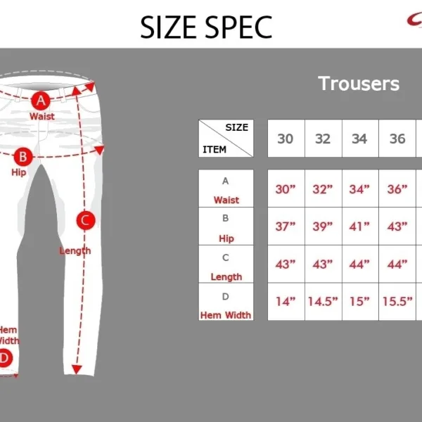 | A Waist | 31 | 33 | 35 | 37 | 39 | 41 |