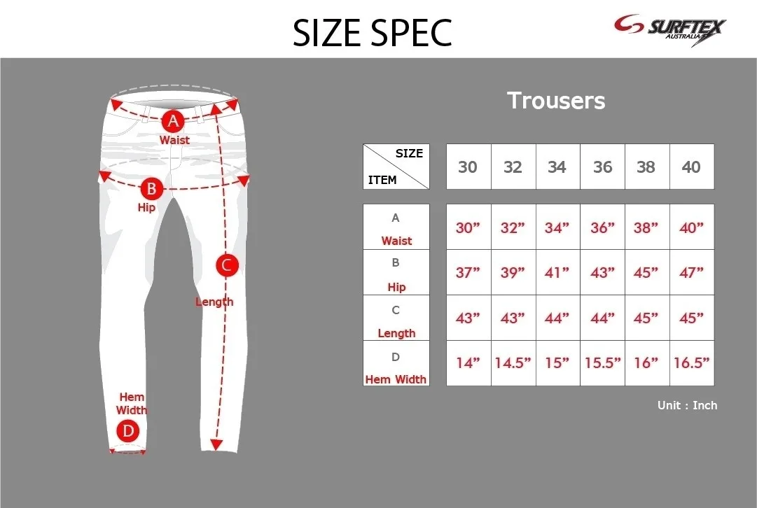 | Size | เอว | สะโพก | ปลายขา | ความยาว |