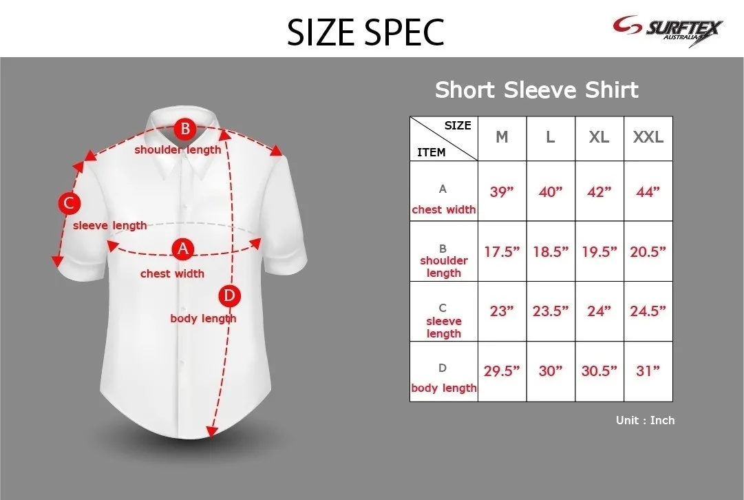 | A Chest width (Inch) | 39 | 40 | 42 | 44 |