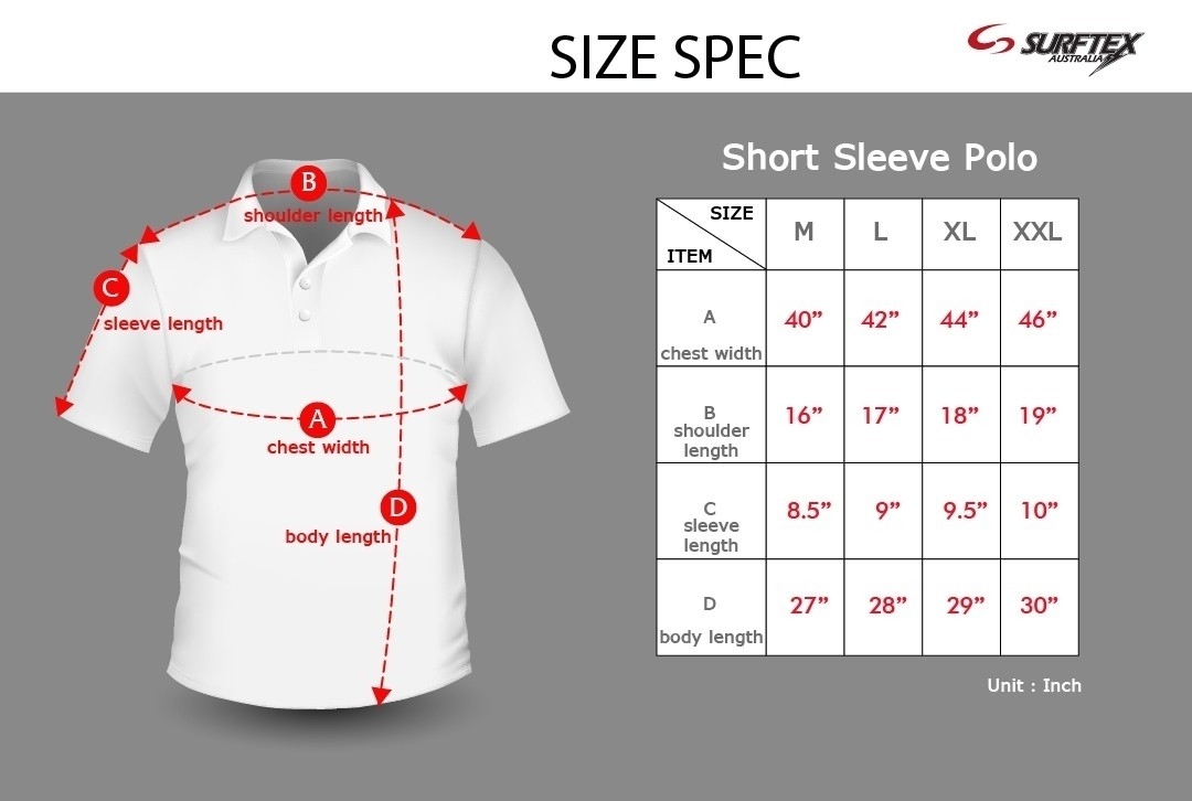 | A Chest width (Inch) | 40 | 42 | 44 | 46 |